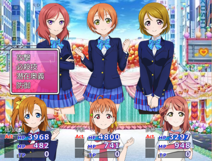 ラブライブ!キャラによる3対3の対戦ゲームです。