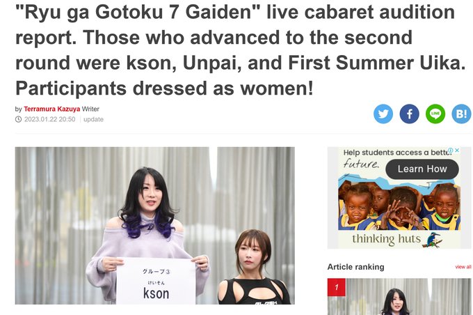龍が如くのオーディションの2次審査までは行ったんだ(笑)。まあ最終的に突破できるかワカランが、騒動があってもくじけずに頑張る人は応援したいです。