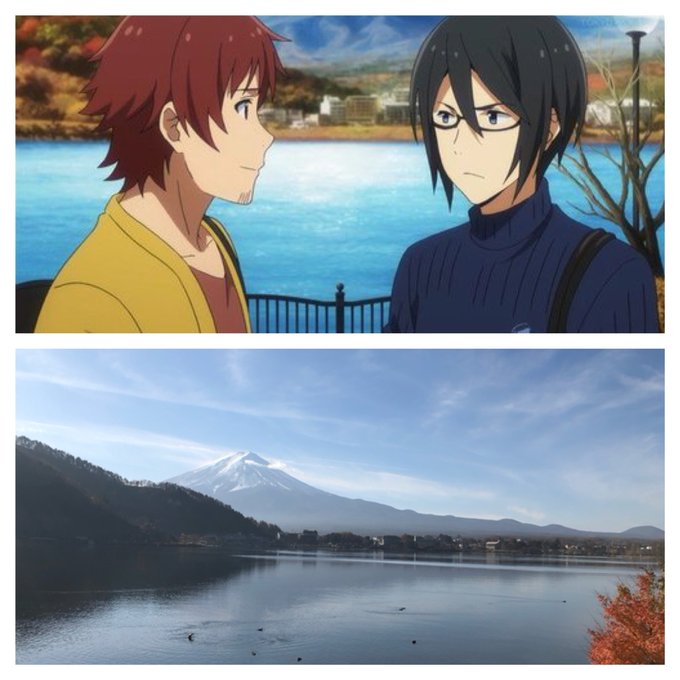 Mアニ聖地巡礼してきたよ!すごく綺麗な旅館で楽しかったです 露天風呂もまんまで富士山見えて興奮した