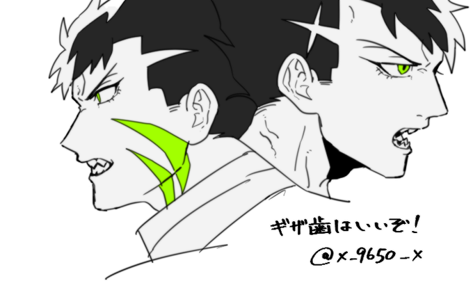 歯ア見せつけてるどーめー描きあいました!この絵で毒林檎ちゃんとペアアイコンします!!かっこよく描けて満足