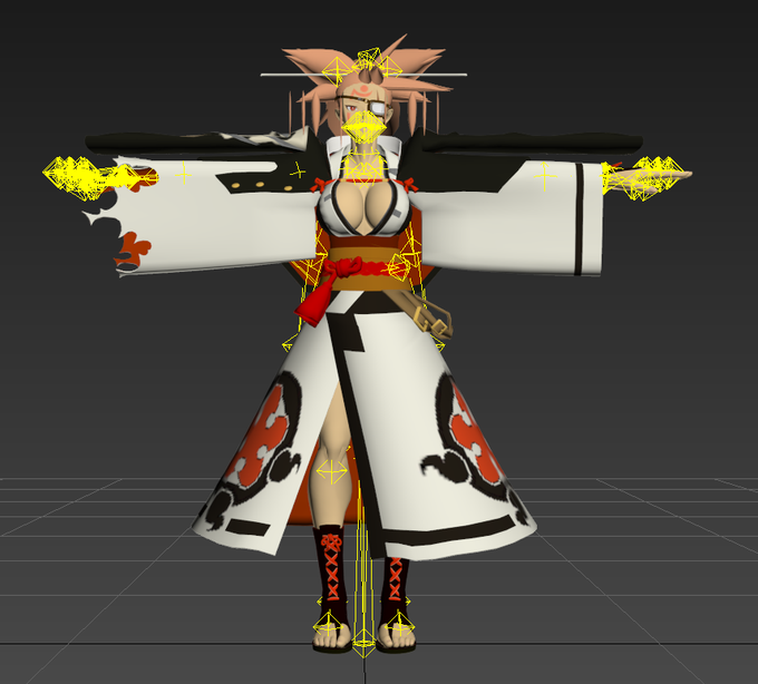posing Baiken on Roy's boneset, and then all the physic bones I'd have to make... such a pain v.v