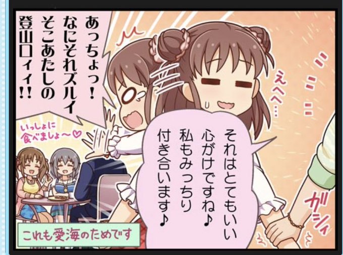 今回の劇場。ちゃっかり愛海の登山口(愛海のではない)にPが収まるラストはたしかにズルいと思ったけど、でも先に清良さんをPに任せて自分だけいい思いしようとしたのは愛海だよね? だからその、これからも仲良くしような。
