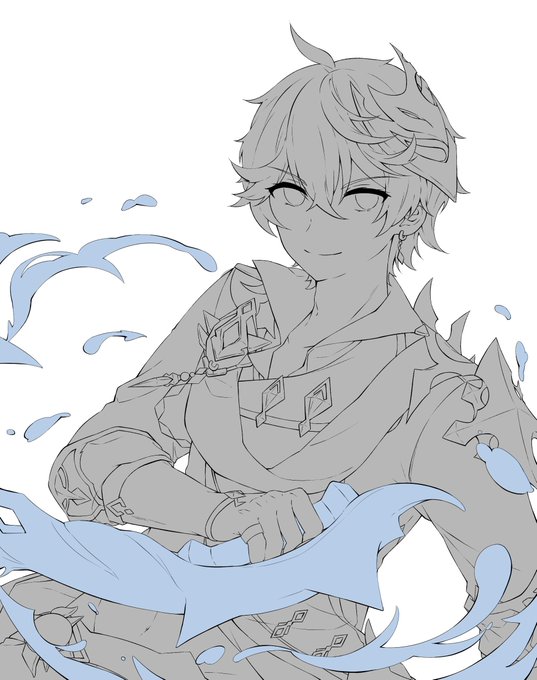 万葉線画:すのさん タルタリヤ線画:私