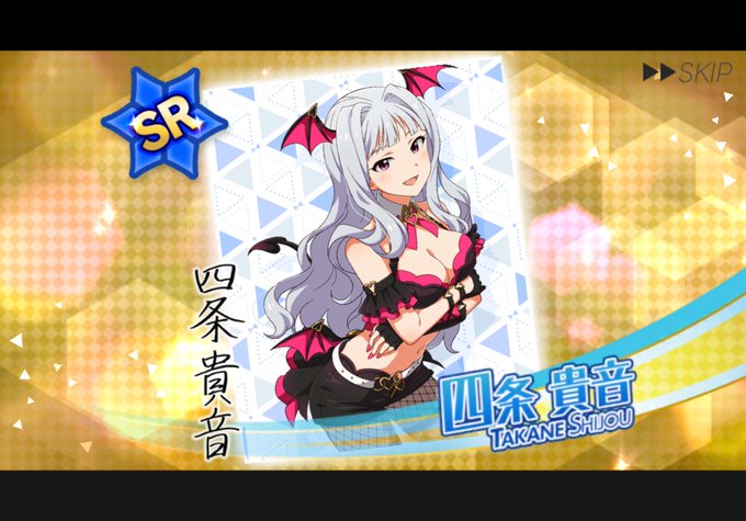 ミリシタのプレミアムSRピックアップガシャ 今月の10連1回勝負 ダークナース ひなた 悪魔っ子 貴音 制服夏服 奈緒 の3枚がnewで来てくれました