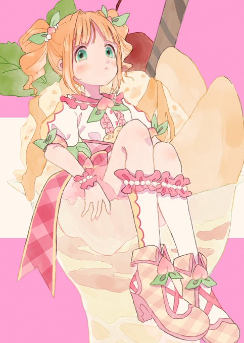 お題箱「アケマスと箱マスのカジュアルな私服姿で伊織と美希が100%オレンジジュースを4本のストローで2本ずつ口に含んでいるところ。美希はストローを指で持っている様子。」