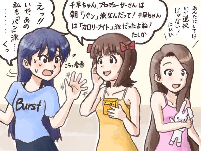 プロデューサーの真似をしたい千早とちょっとイジワルをする春香。そしてナチュラルに同じパン派の伊織🍞