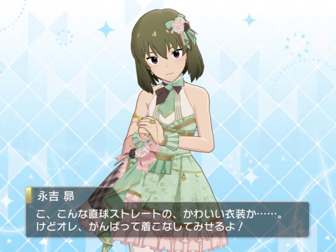 という事で昨日載せる予定でしたがこの度新たに永吉昴を担当することになりました!決め手となったのは今回の限定ですが気になり始めたのはBlooming Starのイベントのカードからです。他の担当アイドルと並行してプロデュースしていくのでよろしくお願いします!