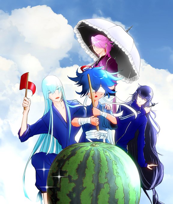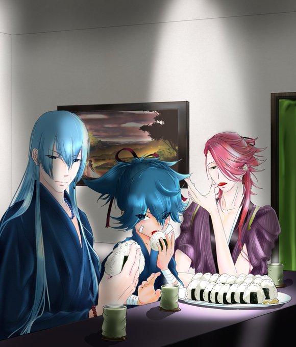 友人の誕生日祝いに描いた小夜左文字くん。とお兄ちゃんたち。不幸な子だって聞いたからお兄ちゃんたちに見守られながら楽しそうにしているところを描きたかった。猫とデグーは友人宅の子がモデルです。