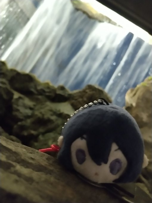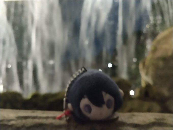 滝の裏のこもち鯰。 庭園でイルミネーション的なのやっていたのだけど、スタンプまで押して加工するのとか近侍変えるのとか忙しないね💦💦