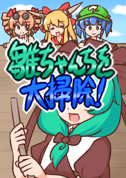 3/2のちゃん雛オンリーで出す新刊「雛ちゃんちを大掃除!」です。 4バカで雛ちゃんちを掃除したりしなかったりするギャグ漫画です。 4コマが40本くらい入ってます。20P/500円です。よろしくどうぞ