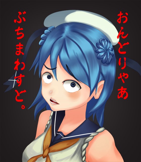 浦風に言ってほしいようなほしくないような。意味は「てめえ(ら)ぶっとばす」みたいな。