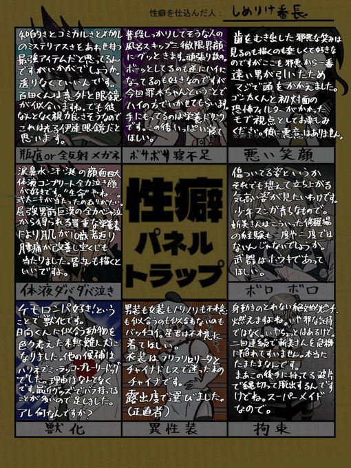 お待たせしました!性癖パネルトラップ完成です!!!!!!!ヒョオ!!!!!!!!(2枚目は本当に読まなくていいやつです。) https://t.co/3tMCUvnQYu