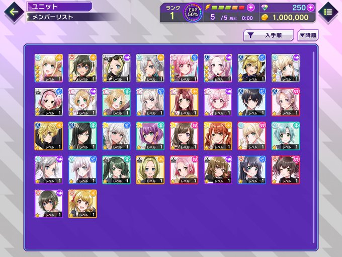 まだレベル上げしてるの☆4のキャラしかしてないからレベル1がいっぱいいるwでもどうなんだろ…先に☆4上げていった方がいい気もしてる。