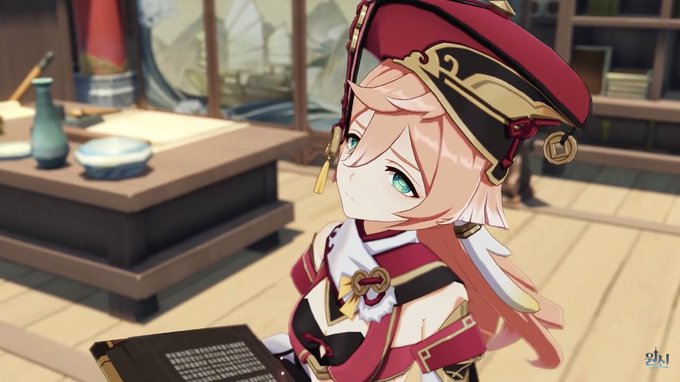 today’s chinese character of the day is yanfei (烟绯) from genshin impact/原神! she is half-illuminated beast! (she/her)
