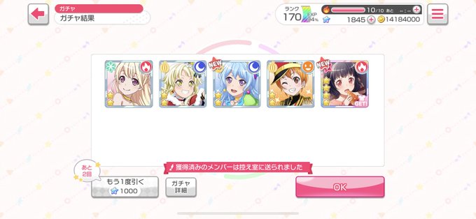 だめだった…もうちょっと我慢してれば10連引けたのに…(あと200スターだった)単発で引いたら爆笑した…