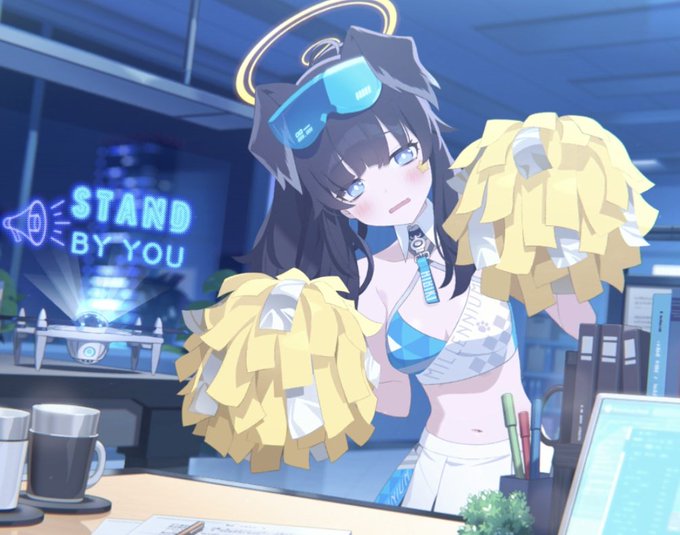 このコスがいいねと先生が言ったから4/2はヒビキの誕生日~おめでとうヒビキ。チアコス台詞最高や。 ビナー君インサネ1凸30秒残しでも69000位でゴルトロ怪しいのどういうこと。。。? #ブルアカ #猫塚ヒビキ #AI絵 #AIイラスト
