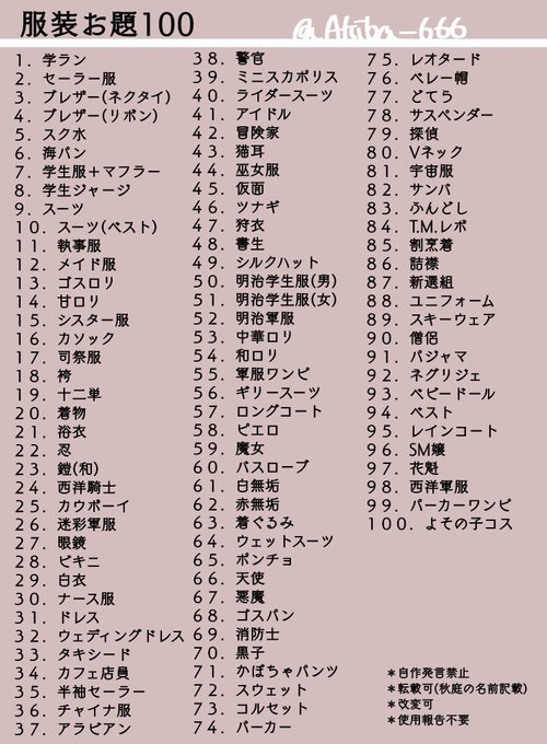 ※女の子の服装の場合は一応、女装か女体化か指定くださると助かります。