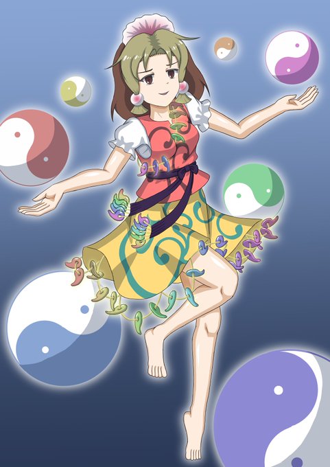ミスマル様の玉乗りお手玉 手先が器用そうなので曲芸とか手品とかも得意な印象… #東方虹龍洞 #玉造魅須丸
