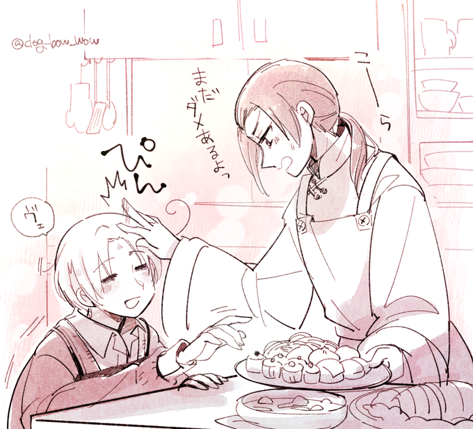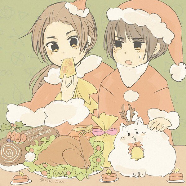 Xmasパーティーの準備中に待ち切れずつまみ食いしてしまう耀さん。そして注意する菊さん。圣诞快乐〜(*´`)🎄