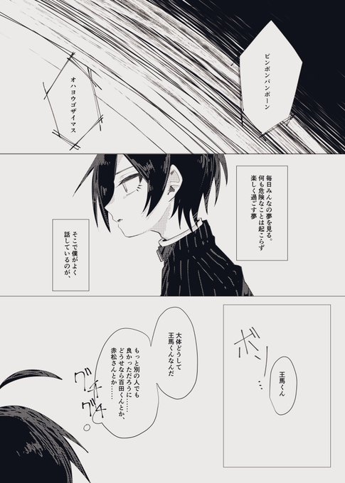 紅鮭軸の夢を見る本編軸の最原と王馬が会話したりするシリアス本です
