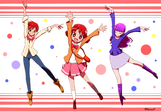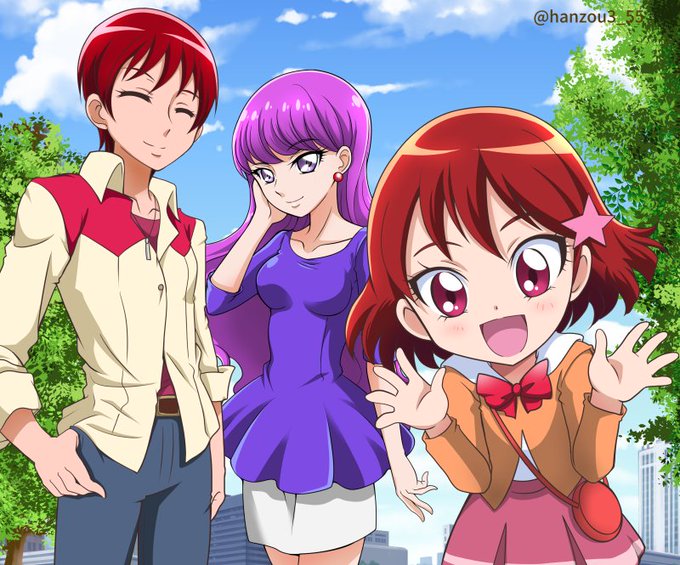 昨日のプリキュア、みくちゃんが可愛かったですね!あきらさんとゆかりさんと一緒に描いてみたけど、この三人の取り合わせだとなんだか夫婦と親子に見えますね