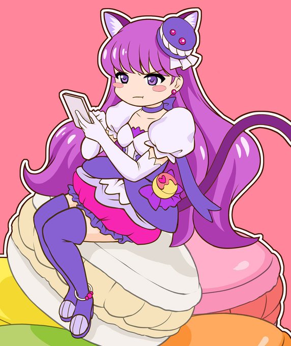 プリキュアらくがきが楽しくなってきた(о´∀`о)キュアマカロンって紫だし猫だし松に変換して遊ぼうと思ったのにふつうに描いて塗ってる( ´∀`)