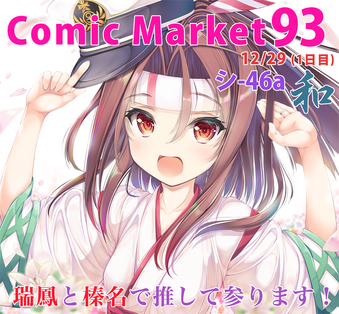 【冬コミお品書き】1日目です。12/29(金)東5ホール シ46a 和 ★瑞鳳の産みたまご入り『新刊セット』と『瑞鳳の寝ころびタペストリー』になります。瑞鳳のたまごを食べりゅううぅぅぅぅ!と叫びながら来てください。よろしくお願いします! (既刊としてC92のセット、タペストリーも持っていきます)