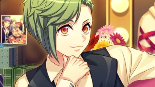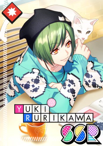 No clue about what the bear’s name is i only know Muku’s William 😭 but they feature it in Yuki’s R [Etoile Boy] from the Dreamed Holiday event. candied apple also from the SSR [Sparkly Apple Report] and idk where the candy is from i’m assuming his halloween card?