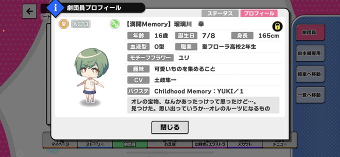 hehe banners from the spring-summer camp event R [Now Preparing]. the pouches are ofc from his default sprites for spring (i think the pink dress can be considered?) and summer. the doll isn’t featured in the card images, but i can guess that they probably mean a lot to yuki