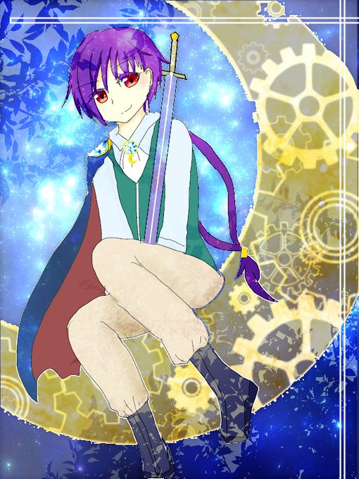 篠裡は精霊使いで月の加護を受けし者。魔法の発動条件は呪文を描く事。性別は男。黒色の髪に紫色の瞳、目深に被ったフードが特徴。人々の希望の存在です。 #魔法っ子 ぶっきらぼうで難癖のある性格ですが、はい。既婚者です。お嫁様は可愛い方です