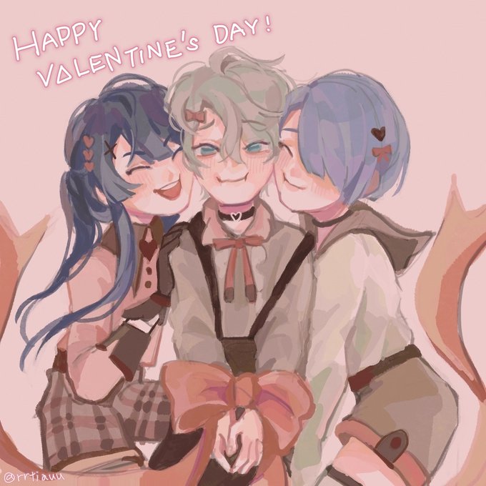 ちょっとはやめのバレンタインならくがき〜! 3人描けて満足☺️ #長尾百景 #描いた晴 #上弦画