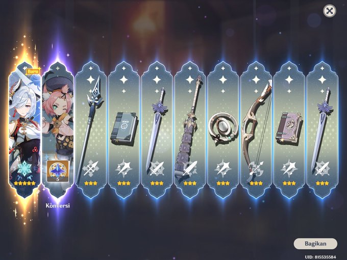 今回のガチャは神引きだった 150連で、申鶴、息災2本、霧切1本 ヤバすぎる