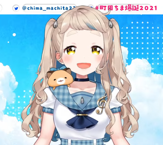 新衣装めちゃかわだしボブとても似合うしインナーカラー青だし全部合わせてとても好みで最高……と思ってたらハーフツインとかさらに好き過ぎて苦しい #町田ちま爆誕2021