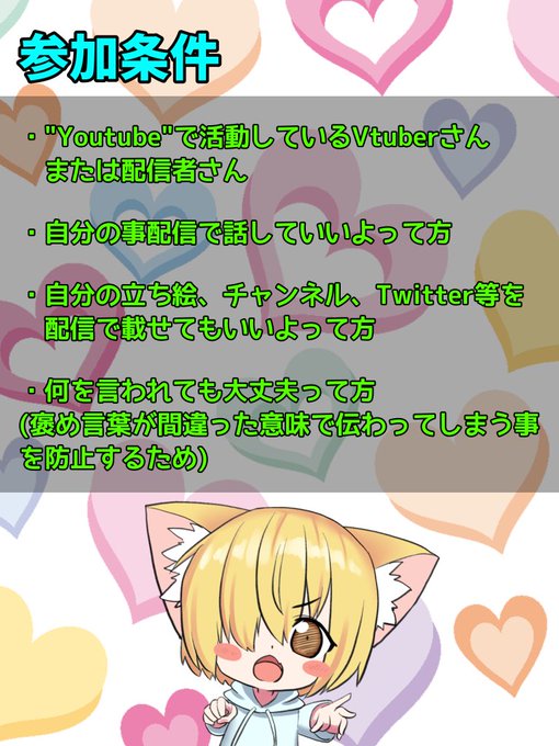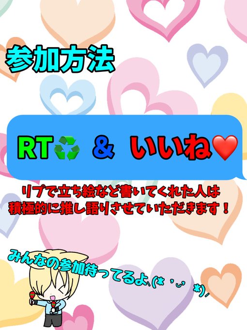 抽選形式、リプで自己紹介、立ち絵などを書いてくれた方は当選率アップ↑↑↑