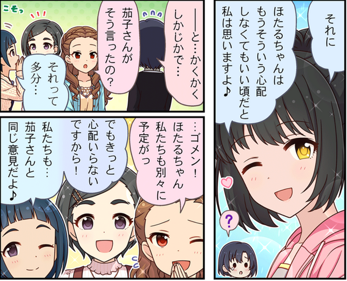 分かっちゃったかも、次のブラン限定。まず、順番的にCOが来る、今年の年明けにほたるが実装された、ほたるは7秒VO特化リフレイン、7秒VOシナジーの2周目がまた来てない、かつ既に夕美が居るから来るとしてもCOかCU、元旦が誕生日のCOアイドルが居る。