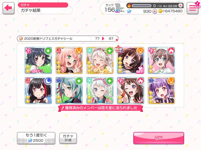 ソシャゲって言ってもバンドリとモンストだけだけどガチャは個人的に大当たりだった!縁起いいねぇ!