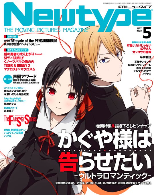 Se presentó la portada de la revista "Newtype", edición mayo, protagonizado por la tercera temporada del anime "Kaguya-sama: Love Is War -Ultra Romantic". Está programado lanzarse el 08 de abril del 2022.