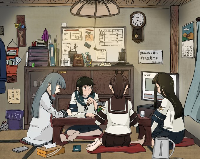 必ずどこかにはある素が垣間見える時って素敵だと思う。人の形をしているけれど人ではない彼女らから見える世界ってどんなものだろう、と想像するのは楽しい。描くのは大変だけど。(これらは深雪、敷波、叢雲、初雪の4名が主なもの)
