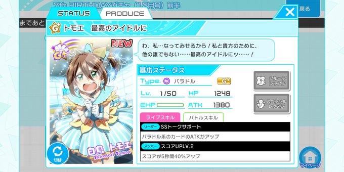 【Tokyo 7th シスターズ】G+レアカード トモエ 最高のアイドルに GETしたよ!皆も遊んでね♪→https://t.co/tOXsSzmfHb 【プレイヤーID】NoByYXA #t7s #ナナシス