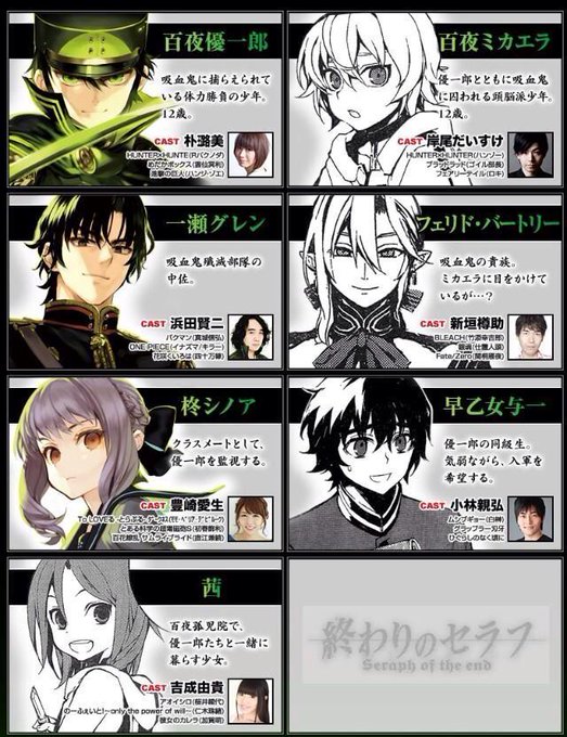 TVアニメ『終わりのセラフ』放送局、新キャスト公開[柊 暮人:前野智昭、柊 深夜:鈴木達央] http://t.co/NuygNFzCCy #終わりのセラフ