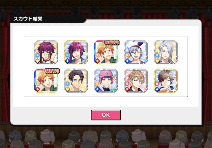 내일 4/11 00:00~부터, 복각 스카우트 『【후야제】우리들의 1st LIVE』 배신! 이쪽은 이전에 배신한 스카우트의 복각입니다. SSR은 여름조 스메라기 텐마, SR은 가을조 후시미 오미&겨울조 아리스가와 호마레, R은 봄조 미나기 츠즈루&겨울조 타카토 타스쿠입니다!
