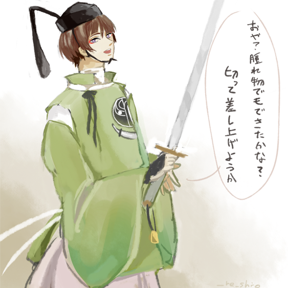 大阪遠征から帰ってきて、パソコンの席についたら22時ぴったりでてんぱって遅刻です笑 いしきりさんありがとう!ぱぱありがとう!石切丸かっこよかったです!石切丸すきだーーーーー #刀剣乱舞版深夜のお絵描き60分一本勝負