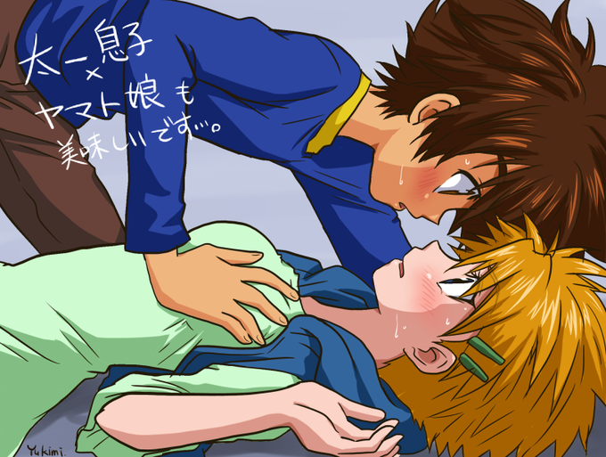 「返せよ太一!」「ヤマトくんったら慌てちゃって~!なになにえろい画像でも入ってんの?」 #デジモン版深夜の真剣お絵描き60分一本勝負 久しぶりのワンドロ参加でし!