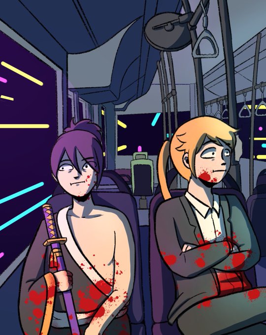 Awkward moment when you flee the scene of the crime but you can't drive so you take the bus but then you meet the other killer at the scene #katanazero