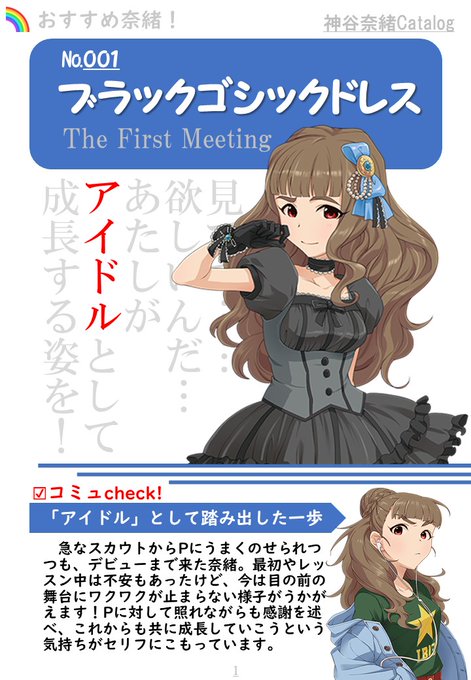 「ブラックゴシックドレス」か「N神谷奈緒」かで一生迷って、結局決められなかった。普通ならブラゴシでいいと思うんだけど、デレステ準拠で作ってたから無駄に色々考えて結局お蔵入り。