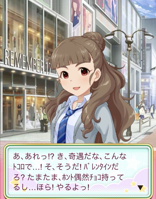 見てー朝起きたら二つの世界線の奈緒ちゃんからもバレンタインもろた。あまりにもかわいい。そして見て!!!!シャニ初自引きSSRですご覧下さい!!!!太腿フェチなのバレたか!?