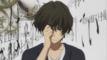 have you lost the motivation to do anything? is your life dull & uninteresting mostly by personal choice? then you will love oreki houtarou, who is the equivalent of a sentient gum wrapper. and you will live vicariously through him. and you will Change Your Mind