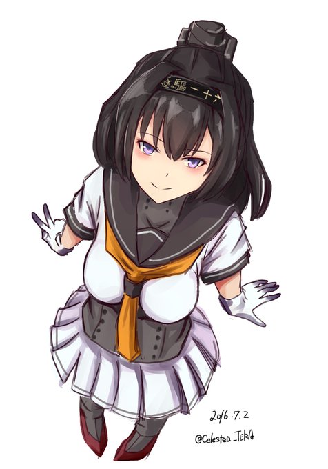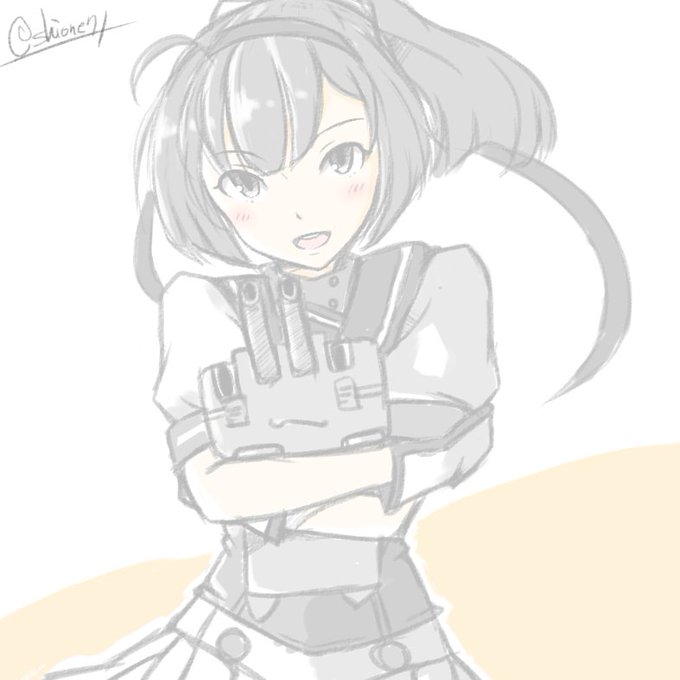 秋月。ラフ描きレイヤーのままペン入れしちゃったミスを何とかしてみた感じ(何とかなってない #艦これ版深夜の真剣お絵描き60分一本勝負 #艦これ版真剣お絵描き60分一本勝負_20160702