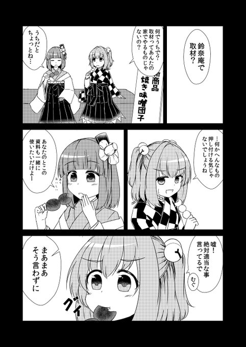 片思いをこじらせて暴走気味の阿求とたしなめる小鈴とそんな思惑と裏腹に事態が飲み込めない霖之助さんの4コマです