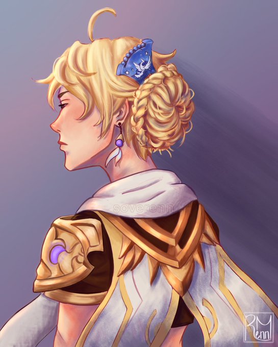 I got to meet @airzach today and he signed this Aether piece I drew and yall that was such a delightful experience. Anyways Aether with Ayaka’s hairpin gift that is all 💜